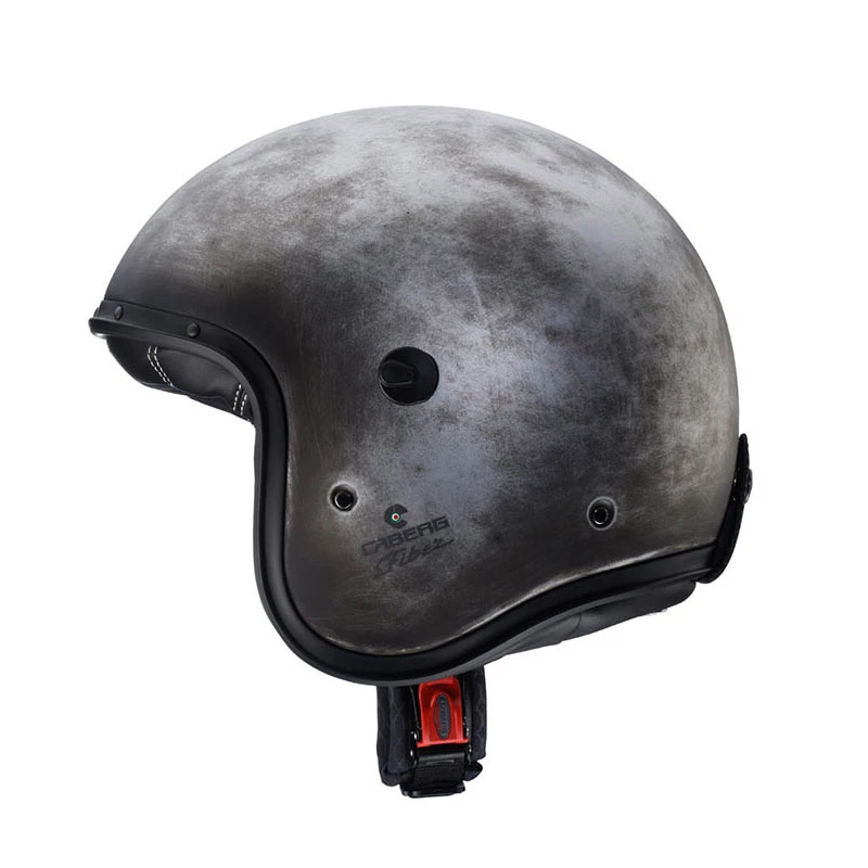 Freeride, è il nuovo jet di Caberg dalle linee eleganti e vintage con calotta esterna realizzata in fi bra di vetro (È disponibile anche la versione Carbon con calotta completamente realizzata in fi bra di carbonio). Le ridotte dimensioni della calotta, tra le più piccole in commercio, permettono un peso di poco superiore a 800 gr. e la possibilità di essere stivato facilmente nei sottosella più stretti. Le fi niture tutte italiane come i cinque rivetti affogati nel bordo calotta, il passaocchiali serigrafato, le prese d’aria in acciaio inserite nel paranuca, e gli inserti in pelle, dimostrano l’attenzione e la cura dei particolari. Freeride può essere facilmente equipaggiato della visiera lunga e trasparente presente all’interno del packaging, pratica nei mesi invernali e nelle gite fuori porta, oppure accompagnato dagli occhialoni vintage disponibili separatamente per i motociclisti dal look più Easy Rider. Gli interni, realizzati con tessuti traspiranti e pelle sono completamente estraibili e lavabili. Calotta esterna: Fibra di vetro Interno: Completamente amovibile e lavabile con tessuti traspiranti ed inserti in Ecopelle. Visiera: Lunga e trasparente con trattamento antigraffi o. Sistema di ritenzione: Fibbia a regolazione micrometrica. Taglie disponibili: XS53/54 S55/56 M57 L58 XL59 Omologazione: Ece 22.05 Peso: 900 +/- 50 gr.