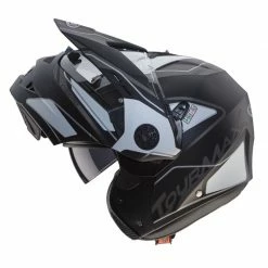 Tourmax è il primo casco apribile Adventure sul mercato pensato per tutti i possessori di motociclette Enduro e Maxi Enduro. Frutto dell’esperienza maturata dalla prima azienda italiana ad aver prodotto caschi apribili, Il nuovo TOURMAX 100% Made in Italy, è dotato di un frontino che automaticamente si avvicina alla visiera quando viene aperta la mentoniera per ridurre al mas – simo la resistenza all’aria. Tourmax, è dotato di doppia omologazione P/J che permette di guidare anche a mentoniera alzata sempre in sicurezza grazie al selettore posizionato sulla sinistra che, nella posizione J, blocca la mentoniera nella posizione di massima apertura evitando così la chiusura accidentale della stessa. Tourmax è dotato dell’esclusivo sistema DoubleVisorTech che grazie ad una visiera parasole integrata facile da manovrare, permette di guidare sempre con la giusta luce e quindi con la massima sicurezza. La visiera parasole è resistente al graffi, mentre quella esterna trasparente non solo al graffi o ma anche all’appannamento grazie alla doppia lente Pin lock. La ven – tilazione è garantita da due ampi aeratori facili da manovrare anche con i guanti posizionati sulla mentoniera e sulla parte superiore della calotta che attraverso una serie di canali interni assicurano un ottimo ricambio d’aria interno. L’interno è completamente amovibile e lavabile con inserti posteriori rifrangenti, realizzato con tessuti traspiranti ed ipoaller – genici per garantire la massima freschezza ed igiene. Tourmax è offerto nei colori nero opaco, antracite opaco, bianco metallizzato oltre alla sportiva versione grafica SONIC realiz – zata su base bianca. All’interno del nuovo Tourmax può essere alloggiato il sistema di comunicazione JUST SPEAK EASY che permette di comu – nicare non solo con il proprio telefono cellulare e con il proprio passeggero ma anche di collegarsi ad un GPS ed ascoltare musica attraverso il telefono o un lettore Mp3. JUST SPEAK EASY è dotato di profilo Bluetooth A2DP che permette l’ascolto in alta qualitĂ stereo. Calotta esterna: Policarbonato. Interno: Completamente estraibile e lavabile trattato santized con rifrangente posteriore. Stop Wind mentoniera amovibile. Ventilazione: Aeratore mentoniera per evitare condensa sulla visiera. Aeratore superiore regolabile per un migliore riciclo d’aria. Visiere: Double Visor Tech. Visiera trasparente antigraffio con Pin lock di serie. Visiera parasole antigraffio. Sistema di ritenzione: Fibbia a regolazione micrometrica.