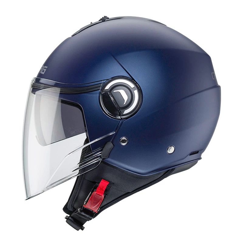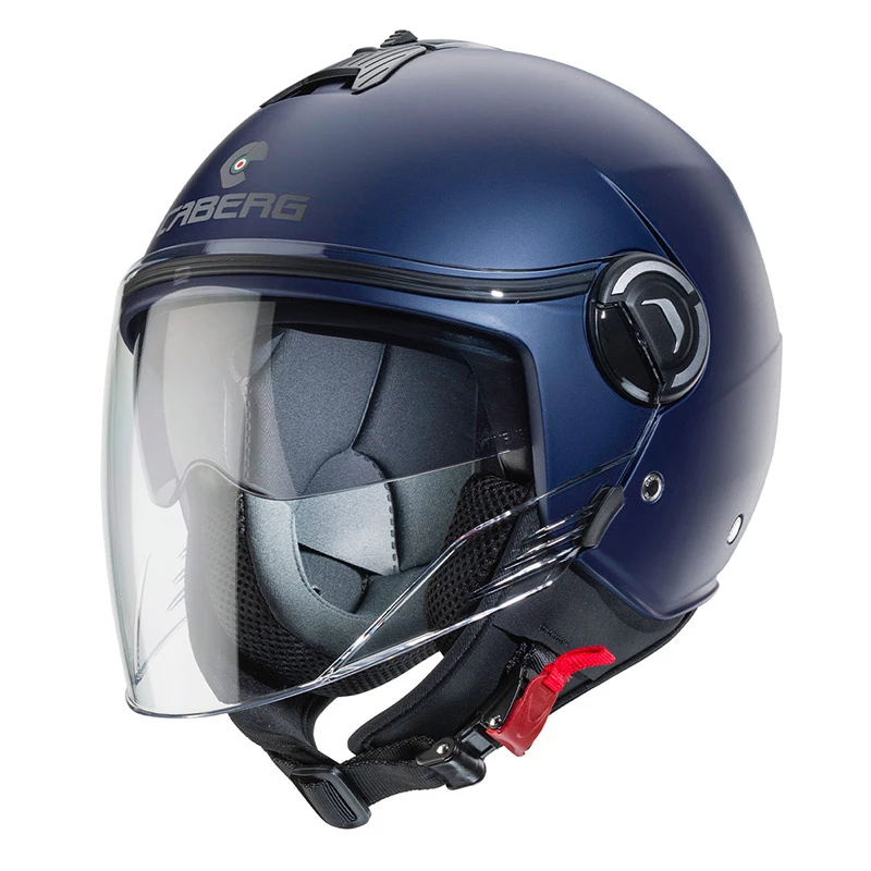 Riviera v4 è il nuovo demi jet di caberg dalle linee innovative ed eleganti pensato sia per l’utilizzo urbano ma anche extra urbano. È prodotto in due taglie di calotta per permettere una perfetta proporzione tra il volume del casco e la taglia del motociclista. Inoltre, grazie al ridotto volume, il casco risulta essere pratico e comodo con la possibilità di essere stivato facilmente nei sottosella più stretti. Il sistema di ventilazione è costituito da una presa d’aria superiore e da due estrattori posteriori, offrendo un confort ottimale anche nelle condizioni atmosferiche più estreme. L’esclusivo sistema double visor tech di caberg permette di guidare sempre con la luce ideale e quindi in piena sicurezza, grazie ad una visiera parasole interna facilmente manovrabile. Inoltre, riviera v4, rispetto al modello precedente, ha una visiera esterna e una visiera parasole più lunghe così da permettere una maggiore protezione e confort durante la guida. La fibbia a regolazione micrometrica permette una sicura ma facile regolazione. Inoltre è presente un anello d’acciaio per assicurare il casco alla motocicletta. Gli interni, compreso il paranuca, sono completamente estraibili e lavabili e sono studiati con tessuti ad alta traspirabilità . Riviera v4 è predisposto per accogliere il sistema di comunicazione wireless caberg just speak evo che, grazie alla tecnologia bluetooth, permette di comunicare non solo con il proprio telefono cellulare e con il proprio passeggero, ma anche di collegarsi ad un navigatore satellitare ed ascoltare musica attraverso un lettore mp3 o attraverso il cellulare. Just speak evo utilizza il profilo bluetooth a2dp.